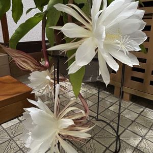 月下美人が咲きましたました💕 18時頃開花が始まり 22時頃にはここまで開きました🥰 今朝酢の物にしました😋