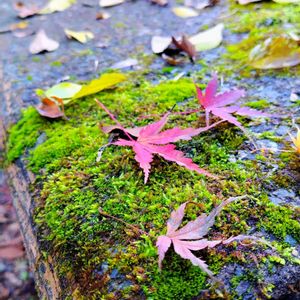 はじめましての吉祥草🌸✨ 職場の先輩花友さんから いただきました💕 お名前のとおり 縁起の良いお花なのですね🎶 それならと庭の和のコーナーに 色付いたおたふく南天と お隣どおしに植えてみました😍 たくさん幸せが舞い込みますように🙏