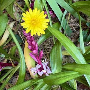 こんにちは😃 晴れ☀️ 今日は暖かい。 GS花友さんの投稿に 「キチジョウソウが咲きました」と ありました。 我家のキチジョウソウのこと すっかり忘れていて、慌てて 庭に〜。 チラホラと咲いていました♪ タンポポも一緒に🎶🤳