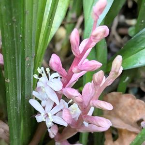 キチジョウソウ(吉祥草)キジカクシ科キチジョウソウ属 近くのお寺の山道にキチジョウソウが咲きはじめました。 葉っぱがたくさんあるわりにお花が少ないです。 4⃣ 上 雄花 下 両性花 5⃣ 2月に見た果実です。 赤い実が可愛いです。 花は下から咲き、下部には雌しべをもつ両性花、上部には雄しべだけをもつ雄花 暖地の林内に生える常緑の多年草。葉は根生し、長さ10〜30cmの広線形。花茎は高さ8〜12cmになり淡紅紫色の花が穂状につく。 花被片は長さ0.8〜1.2cmで、下半部は筒状に合着する。 本州の関東地方以西、四国、九州に分布。 吉事があると開花するという伝説をもつ花だそうです。 🏷 白い水曜日♡ 🏷 白い貴婦人✨
