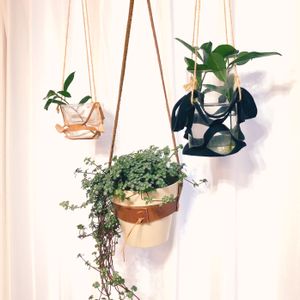 手作りハンギング マクラメ編みやレザーで、ハンギングを作りました(о´∀`о)色々な編み方あるからハマると楽しいですね🤩 2015.02.26