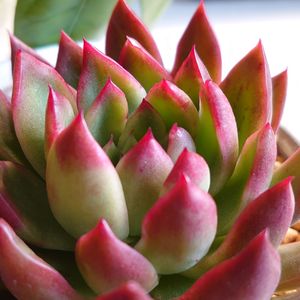 エケベリア 花の宰相 おまけで頂いたもの ピンクっぽい赤とグリーンが可愛い🎵 今日でシンピの引っ越しも終わり、寒さ対策完了 雪、積もるかな 程々で終わりますように😅