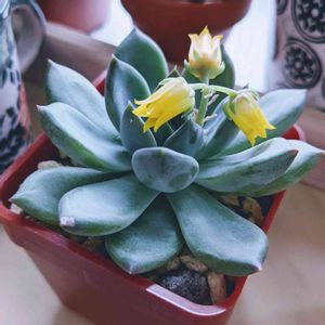 チワワエンシスとしてやって来たエケさんのお花咲いたんですが、これたぶん違いますよね😅 いつかピンクっぽくなるのかなーと待つこと1ヶ月👀✨黄色いまま開花…最初からちょっと疑っていたのですが😞 インターネットで検索したら、アガボイデス ✕ プリドニスに似てます🧐現在お店に確認中📨 でも、これはこれでかわいいので👍🏻