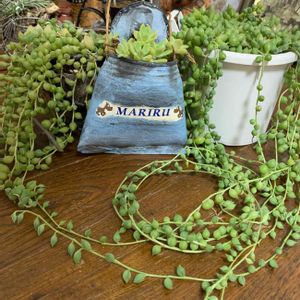 こんにちは〜(ᐡᴗ ̫ ᴗᐡ)︎❤︎︎ 相変わらず斑が戻らないエンジェルティアーズとマッコス?で🏷ネックレスの日に参加させていただきます⛓✨ 少し葉焼けしちゃいましたがスクスク長くなってくれました😋 左は右のをカットしたものでもう2年目かな👀 これも斑無し💧 真ん中のmariru缶、葉挿しから育てたマッコスも変化なしで元気そうです...けど、この子本当にマッコス かな?👀 リトルビューティー にも似てる様な〜... (˘ω˘)
