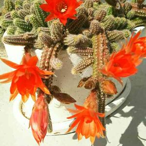 プレゼントしてもらった大切な白壇🌵 花が咲いた〜😍 赤い花でゴージャス✨ 蕾が他にもあるから楽しみ💕