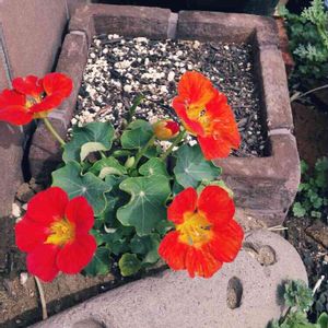 ナスタチウムの奥に 諦めかけてたドイツスズランの発芽💓