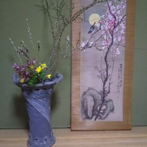 ☂️が降り、我が家の庭に有るお花、生けて見ました🎵 春が、お部屋の中に、来てくれました😄🌿