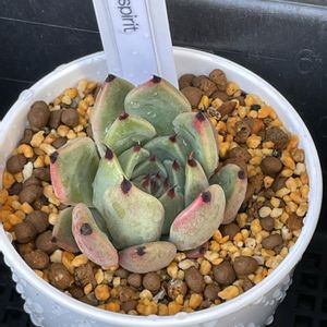 この子は一体何者でしょうか 札にはレッドスピリットと書いてあるけれど、全く赤くないです 左が4月4日、左が5月12日、同じ子です どうしてこんなぱっかーんになっちゃったんでしょう 水のやりすぎですか? 教えてください