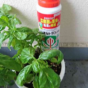 皆様、おはようございます(*´ω`*)•*¨*•.¸¸♬•*¨*•.¸¸♪ バジル様は、葉が弱いから農薬かけて放置すると葉が傷んでまう。 朝から水シャンプー後は、昨日買うてきたオルトランふりかけでっせ😺 ゆっくり食べるんやで😀