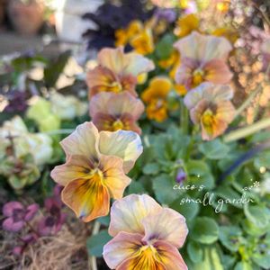 12月3日に投稿した おしゃれビオラJOY₊✼̥୭*ˈさん ツートンカラーは健在ですが…可愛さアップしています😊💖👌 ふんわり優しいカラーでニッコリ微笑んでいます.。*♡.❅*。゚ ॱ