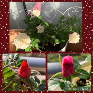 今週もスタート💨 もう11月も3週目、そろそろお花も冬支度しないとですが何だか今年は気分が遅れ気味です〜 12月の一週目に息子ファミリーが帰省する予定なのでなんとなくそれも気忙しいなー ↖️は近くの花壇の蔓薔薇に可愛い赤いミニ薔薇が咲きだしていて、見るのが楽しいです❤️ ↗️は我が家のグリーンアイス、また咲きだしました。蕾があと一つ出来ていて、やはりこのミニ薔薇は元気で強いですね〜 寒さには強いらしいですが、もうすぐ本格的に寒くなったら剪定もしないとですよねー もう少しこの可愛いミニ薔薇さん楽しみます〜🤍💚💗