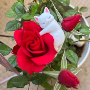 暖かくなり、薔薇やミニ薔薇、紫陽花にも花芽が見えて来ました。 そんな中、私の体調、風邪の方は解放に向かってるんですが、まだ炎症の数値が高いそうで、今日から4日 程、点滴に通ってと言われちゃいました。 そんな事初めてでちょっと自分でもびっくりですが、それが還暦なのかなーなんて思ったりもします でも暖かいのが救いです😊 今日も行って来まーす ベランダの赤いミニ薔薇に蕾がたくさん色づいて来ました🌹 GS友さんに頂いた居眠りニャンズと一緒に〜 🐈🌹💤 良くなるまで少しだけお休みしょうと思います。 皆さん いつもありがとうございます🙇♀️ 🏷️真っ赤な火曜日 🏷️ニャンニャン祭り 参加します