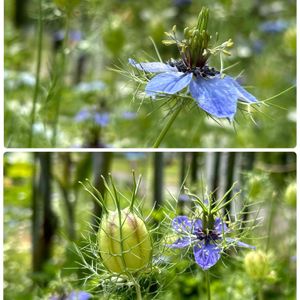 ニゲラ💙🩵🤍🍃𓂃𓈒𓏸︎︎︎︎ ぜ〜んぶニゲラ💙🍃 ニゲラの英名は✿. 「Love in a mist」 「霧の中の恋」という意味が あるようです︎︎𓂃⟡.· レースで編まれたかの様な 繊細な葉に花がおおわれて いる感じが儚げに見えたり 霧の中にいる様な𓈒◌𓐍𓈒°𓈒 幻想的なイメージが 有る事から付けられた ようです(ღ*ˇ ˇ*)。o♡ もう一つ✿. 「Devil in a bush」 という名前も持っている 様です︎︎𓂃⟡.· 「茂みの中の悪魔」という意味👿 花が終わった後のストライプ柄の 膨らんだ実の上部が 複数のツノを生やした様な姿で 不気味に見える事からの様です 𓈒◌𓐍𓈒°𓈒◌𓐍𓈒✩.*˚𓈒◌𓐍𓈒°𓈒◌𓐍𓈒✩.*˚ 何だか不思議なお花ですね 妙に気になるお花💙🤍🍃 花後の実もドライフラワーに なって魅力的だよね𓂃𓂂ꕤ*.゚ 確かに幻想的で𓂃 ◌𓈒𓋪 ずっと見つめていたくなる 不思議なお花✿.♪♪ ずっと貴方が気になって この公園に再び会いに来たよ 待っていてくれたね♪♪ ありがとう。:°ஐ..♡* 今日も素敵な一日を お過ごし下さい🍀*︎︎𓂃⟡.· のんびり気まま花散歩🚶♀️𖡼.𖤣𖥧𖡼.𖤣𖥧