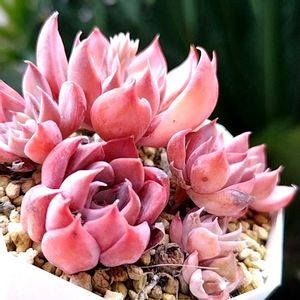 グラプトペタルム 銀天女 お迎えした時はひと株だったのですが、気がつくと子株が増えて鉢から溢れかえって花束みたいな状態に育っています😊 今年の春に植え替えたばかりなのに、もう鉢増ししないといけなくなるとは予想もしませんでした😅