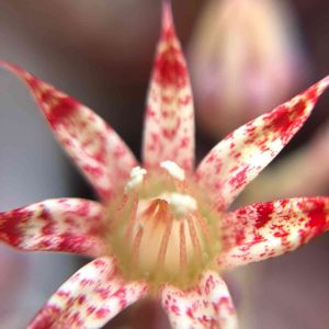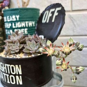 どんどん多肉ちゃんのお花が開花する中、ルスビーのお花は、なんだか毒々しいお姿です("⊙Д⊙")