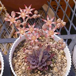 思てたのと違う…(゚ω゚) クラプトペタルムの花はセダム系なんだなぁ エケベリアみたいなのかと思ってました 紫の葉に、赤い縁取りのベージュの花 ちょっと秋色だけどシックでいいね( ˊᵕˋ )