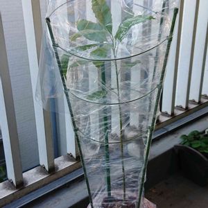 アボカドさんの冬支度をしました☺️ リング支柱を立て、ストレッチフィルムを巻き、上からビニール袋を被せました。 袋の両端を切って、空気穴を開けてあります。 根元にはバークチップを敷き詰めました。 太陽光で鉢が暖まるかなと思い、鉢には黒い水切りネットを5重に被せました😁 普通に被せたら鉢の半分しか届かなかったので、上半分はネットの底を切って腹巻きみたいにしてあります😊 これで、真冬の寒気に耐えられるか心配ですが、頑張ってもらいましょう😁