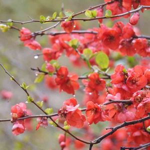 催花雨のぶら写ん歩🐾📷️🌂 雨上がりの木瓜に雫が綺麗でした☺️