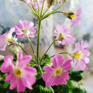 #プリムラマラコイデス 今年も咲いてくれました。 何時もなら春に咲くのですが二階の窓辺に置いていたら暖かいので早く咲きました。