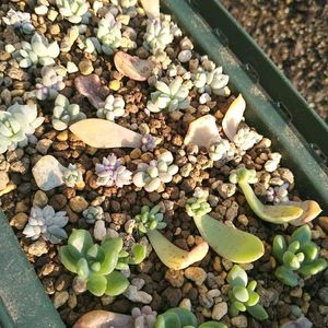 おはようございます(*^▽^*) 鉢のあちこちに散らばっていた葉挿し達の一部を整理してみました! ほとんどの葉挿しはまだごちゃごちゃです😅💧 既にどの多肉のコか分からなくなってしまったコもいます… 成長した後にどんな多肉になるのか楽しみです♪ この葉挿しエリアは白牡丹メインの場所にしようと思います。