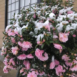 こんにちは☀ ①②🌿ポリゴナム🌿 雪の中でも、元気で開花中です💗 ③🌿サザンカ🌿 雪と共に咲きました💗 ④⑤❄雪景色❄ 今朝の雪景色です👍🥰