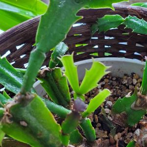 シャコバサボテン🌵 おはようございます(⌒‐⌒) 会社で育てているシャコさんです。 新芽🌱も親葉と同じ形なので やっぱり親子なんだなぁ~ な感じです (⌒‐⌒)