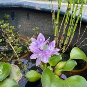 ホテイ草に花咲いたよ〜 可愛い花がさくんですね〜 この下には産まれたてのちびっ子メダカが無数にいます、、、(・Д・)