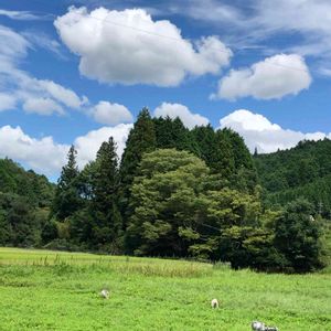 青空の下、畑で草を食べる🐐🐐🐐 先日ドライブに出掛けた豊田市の山あいに 素敵な光景が広がっていました🌿🐐🌲🌲🌳 娘と🐐を見てきました🌿