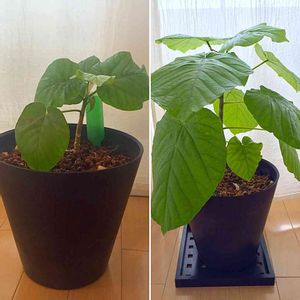 そういえば、植え替えした時に写真を撮っていたことを思い出しました。 左は去年の9月。 1年でこの成長は、遅いのか?普通なのか?^^; 何はともあれ、大きくなったな~♬*゚