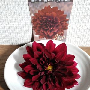 リクエストの黒🦋ダリアです。 昨年お迎えしました。 花首が折れてしまった😵💧為 お皿に水をはって 暫く楽しめました。 連投ですみません😢⤵️⤵️🙏