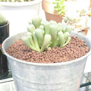多肉植物の魅力を教えてくれた白牡丹 元々はサボテンを集めていましたが、ある時ホームセンターで寄せ植えにと、数種類の多肉植物を買いました、そのうちの一つが白牡丹でした、多肉植物の育て方を調べてる内に、葉挿しで増やせることを知り、早速2.3枚の葉っぱで挑戦してみました、結果はすべて成功!葉っぱから増えるなんて衝撃的でした、その時の感動は今でも忘れません。 それから5年ぐらいたちますが、毎年白牡丹の葉挿しをして今では4世代目の白牡丹が育っています。 一株から始まり、今までに百株以上の白牡丹が育ち、寄せ植えに欠かせないものとなっています。 丈夫で簡単に増やせる素敵な白牡丹、これからもたくさん増やしていきたいです。