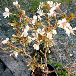 富士桜 湖上の舞 樹木医の庭で咲く豆桜 花はかなり小さく100円硬貨程 枝がうねるように曲がりながら伸びることから、雲龍桜の別名も。 盆栽用として開発された為、大きくはならないらしい。 2メートル程になる鉢植え。 2025/0408pic 🏷️No.580 2025年の桜 時間のある時覗いてね。