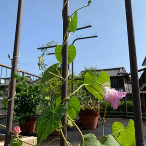 大人の多肉遠足😁の時に、Kanalyaさんに頂いた種からのアサガオ スプリットペタル💕 GWあたりが撒き時と教わったのに、待ちきれずに育苗したので、か細い子にしてしまったけれど、可愛く咲いてます(⑉• •⑉)♡ 葉が4,5枚の時から咲き始めたので、驚きましたが、咲きながらツルを伸ばして3mほどに😁 5本とも順調だけど、小さい時に怖くて(笑)ピンチしなかったので、少し後悔😓 変わり咲きのアサガオ、初めてなので見とれてます❣️ 咲き終わる頃、濃いピンクから赤い縁どりになるのも、可愛い(⌯˃̶᷄ ⁻̫ ˂̶᷄⌯) Kanalyaさん(*ˊᗜˋ*)/ᵗᑋᵃᐢᵏ ᵞᵒᵘ*