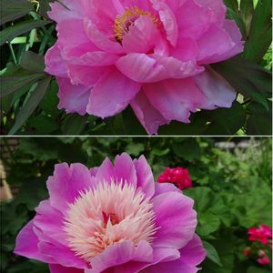 おはようございます 散歩道の花壇で咲いていました 今日は母の日 優雅で美しいお花を💐 上段 ボタン 八千代椿(名札あり) 4/21 下段 シャクヤク 5/8 どちらもボタン科ボタン属