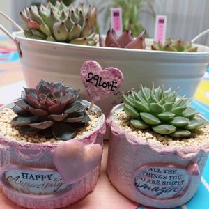 サニコさんのバレンタインリメ缶💝 お願いしていたリメ缶が 昨日届きました🎵🎶 おまけにハート💗のピックを 付けて下さいました😆⤴️💓 表にはHAPPYValentinesと手書きで 書いてあります💗 左側のリメ缶には大和美尼💕 右側のリメ缶には今日DAISOで 見つけたシルバースター💚 を植えました🍀 バックはこの間お迎えした45さんの 韓国苗🍀今日やっと植えました😆 って事で 🏷️イーオンナ美人の日 に参加します❤️