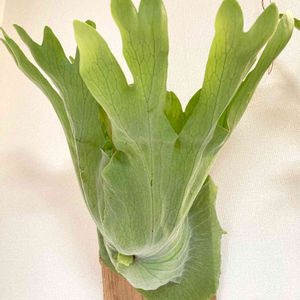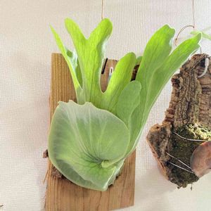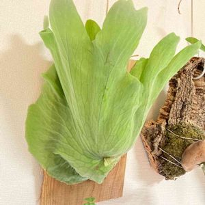 ビカクシダ ワリチー 壁にはみ出し中😆この前落として かっこいいマスクみたいなとこに キズいった🤣 胞子葉はなかなか出てこないな〜(๑¯ω¯๑)