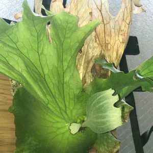 ビカクシダ ワリチー ワリチーは成長がゆっくり⏰ ビーチーが3枚くらい葉を出す間にワリチーは一枚程度🌿 いまの貯水葉が大きくなってくれたら、 この前落として出来たキズが消えるのです♫