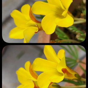 今日のお花 オキザリス ①フラバ 白に続いてかわいい黄色も咲いてきました ②ナマクエンシス パーシーカラーのように花びらの裏に 赤の縁取りがあります