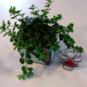 趣味のステンドで作った小物入れにペペロミアをin♥ 意外とぴったりで、テンション⤵な小雨が降る中でもご機嫌な朝になりました(*^^*)