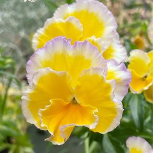 お花屋さんでタグ無し🏷で298円で売られてたこの子…なんか見たことあるなと思ったら多分エッグタルトかも‼️と思い購入♪( ´θ`)ノ 店主に品種訪ねたところ分からず😅 よーく見ると紫の縁取り入りで可愛い😍