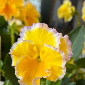 もひとつ黄色いお花🌼 ビオラ エッグタルトさん💕 この子はお迎えした時から フリル部分に紫色のエッジが入っていたの✨ 個体差があって寒くなってくると こういう子がいらっしゃるとの事でしたが… この子はずっとこういうお花を探せ続けてくれました💖 素晴らしいといか言いようがありません👏👏👏 昨年秋から約半年間楽しませてくれたこの子も そろそろ終わり… アントワネット様もドラキュラ伯爵も お片付け始めてます そして、この子ももうすぐさよならです😢
