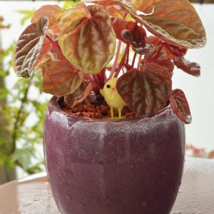 🍊🍎🍋🍆💚 ペペロミアの 「キト」ってやつ なんですって🌱🌱🌱 葉の色が オレンジや赤や黄色に見える 🍊🍎🍋 かわいい~(*´ェ`*)🍊🍎🍋 何を思ったか むらさきの盆栽鉢に 入れました🍆 うんうん かわいい~(*´ェ`*)🍊🍎🍋🍆💚 これから楽しみです🌿✨