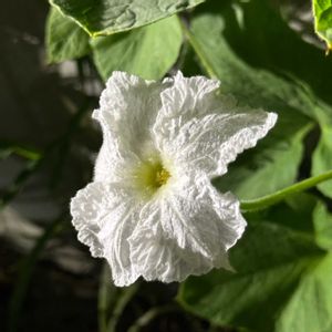 『ユウガオ』 🏷️今日のお花 夕顔は『枕草子』や『源氏物語』にも登場する、歴史のある野菜なんですよ。 食物繊維が豊富に含まれているため、腸内の善玉菌の増殖を活性化させる働きがあるとされ、コレステロールや老廃物を吸着して便として排出し、動脈硬化、糖尿病など生活習慣病やガンの予防に役立つと言われています。 どんな料理にも馴染みやすく、食欲のない時にもおすすめの野菜です。 夕顔(ユウガオ)は、水分が多く、食物繊維、カリウム、ビタミンC、カルシウムなどが豊富に含まれる栄養価の高い野菜です。特に、かんぴょうの原料となるため、食物繊維が豊富で、腸内環境の改善に役立つとされています。 ユウガオは強い味がないのでどんな料理にしても美味しく食べることができます。味噌汁や野菜炒めにしたりと、日常的な料理にもよく合う野菜です。薄味のスープに入れたり、あんかけの具にすると、ユウガオのやさしい味や食感がよく生きるかもしれません。 今日から8月ですね。 今月も 宜しくお願いします(⁎ ᎑ˬ᎑)⁾⁾🍀