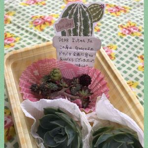 昨日は 沢山のお祝いコメントありがとうございました💕 先日のGracoさんのプレゼント企画🎁の 当選品が 本日 無事に届きましたぁ🙌 七福神以外にも 可愛い カット苗達が入っていましたよ! それと 美容室経営と言う事で 高そうな ヘアケア試供品の詰め合わせも 頂きました 🙌 Gracoさん ありがとうございました😚 大切に 育てますね〜 ⤴️
