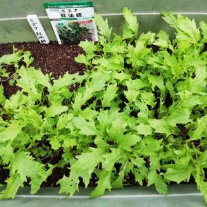ミズナ 紅法師 2週間経ちました。 葉っぱに穴がポツポツ。 虫がいるような。 どなたかご存じの方、間引きはいつするのか教えてください。