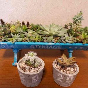 トワさんから頂いたリメ鉢とセメント鉢🍀 やっと多肉さんを決めました。 2ヶ月かかったけど… 寄せ植えはなんだかバラバラだけど… モリモリになってくれるかな😃 トワさんありがとうございました💕