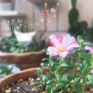 あ、暑い……(|||´Д`)💦 朝から暑すぎ〜💦💦 暑いのは苦手だけど、お花にとっては ずっと日照不足よりもお日様🔅🔆が当たった方がいいんだよね〜😫💨 ほら、こうやってお顔見せてくれるし🌸🌸🌸 さば*さんの なんと❣️応募した人みんなに🎁という寛大な企画により 頂きましたポーチュラカ💗 赤いストライプがとっても可愛いの♥️✨ 真ん中に植えて どんどんチョンパ✂️して鉢い〜〜っぱいに増やす予定(♡>艸<♡)✨✨💨 さば*さぁん‼️可愛いお花ありがと〜〜〜〜💕✨🎶👍☘️ またモリモリになったらUPするねぇ〜😆 (間違えて 自分で いいね👍触っちゃった💦恥ずかすぃ……😓)