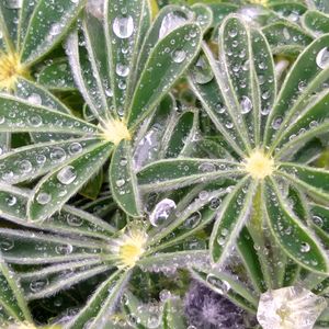 今日は☔結構降りました。 ルピナス、モフモフが水を弾いて水滴?雫?になっていました🩵🤍 キレイ〜✨😊