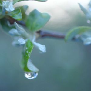 『梅の花と水滴◌』 水滴の水曜日 梅の木で 丸い水滴を見つけました💧 水滴が落ちる時って 丸 だったんですね𓂃◌✨ 日の丸構図で ✧p📷qω•,,´)パシャ✧ 今年初めての雪❄ 寒いですね〜😰 🫒🌿🌿7