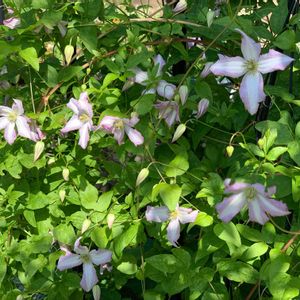 クレマチス リトルネル✨ 優しい淡いピンク💓 プリンセスケイトの下で咲いています😊